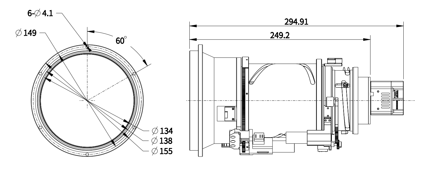 > 30 ~ 180 mm motorizált termikus lencsé.